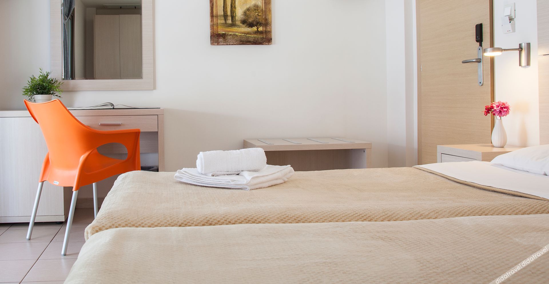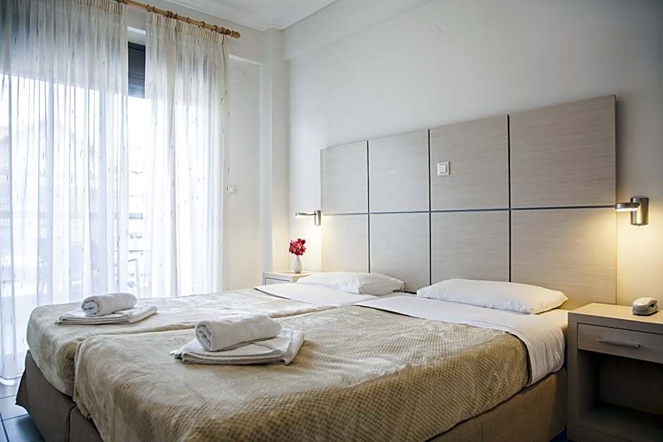 Renovated family hotel with good maintenance and management. Good location-right at the beach, has a beach bar, very friendly staff (reception, waiters, drivers...), has airport shuttle option, good restaurant with a nice choice of food (especially for a 3☆!). Lots of tavernas, mini-shops and everything else within walking distance (the season starts mid June). Family rooms are just the right size - two terraces and two bedrooms. Bathroom window exists, so no excess humidity inside. Mavridis seems to be the best/newest place around when comparing it to the neighbouring buidings or hotels. Good wifi signal with fair but functional internet at the beach. The beach is nice, sandy, sunbeds of Mavridis are adequately distant from each other (compared to the sunbeds of neighbouring cafees which are tightly packed).