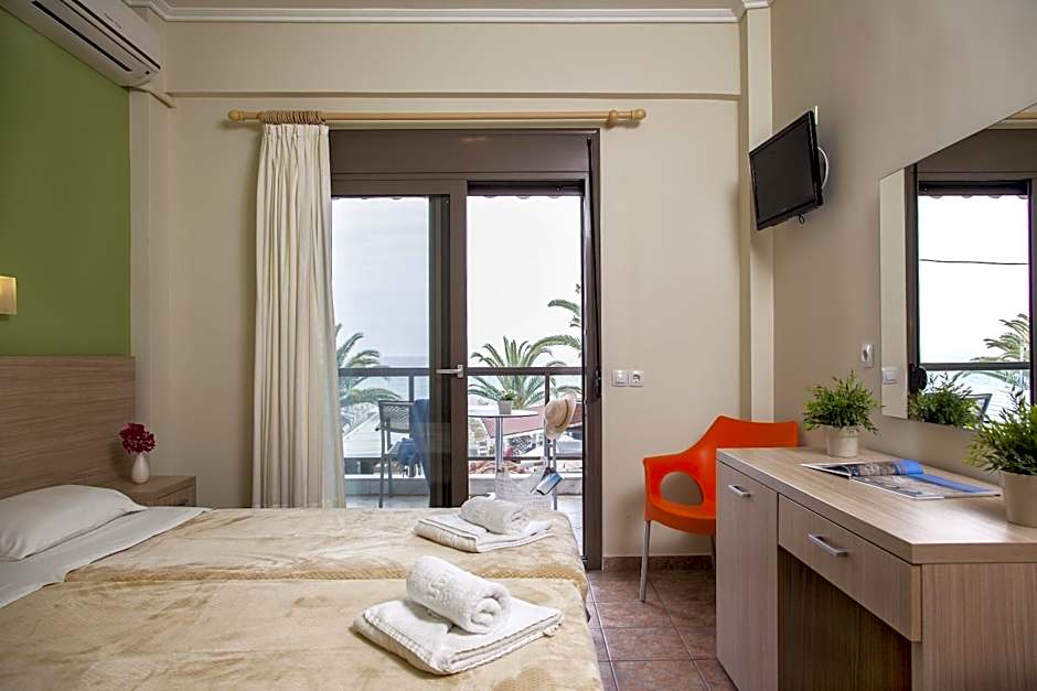 Very easy to find the hotel, close to the beach, clean rooms( every day they cleaned the room), sandy beach, small and quiet village friendly staff, good food. Absolutely a destination to return for a nice greek vacantion.