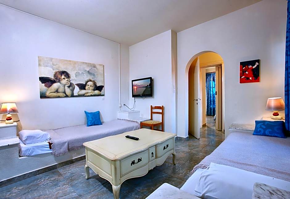 Standard Family room 35 sqm with a view to the gardens, the pool and side sea view to Athos. The room consists of two bedrooms, one bathroom and two balconies or two terraces with a comfortable living area. On the first room there is one double bed, on the second room two single beds. Ideal for families! Closet-wardrobe, sat TV, Safe, Air condition, fridge, water boiler, bathroom amenities, hair dryer.
