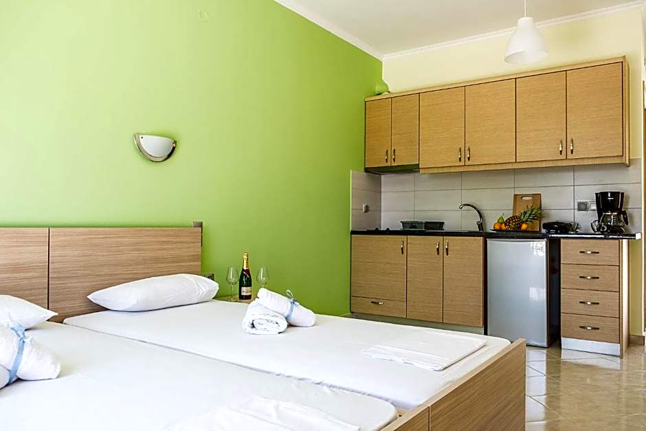 Room was a little smaller than the description with only 2 beds rather than 3 and the balcony but on reflection the room was perfect for me . I traveled slightly out of season so the pool and spa were not really ready but looked very inviting and in great condition, Host was very helpful and welcoming ,this is Greece at its best