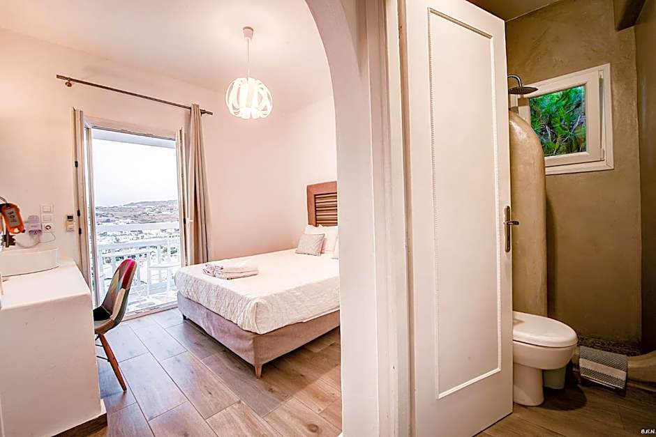 One small downside was that our room didn’t have a view from the bedroom itself, which was a bit disappointing. However, we were pleasantly surprised to find a stunning view of the famous Mykonos windmills from the shower, which made up for it in a fun and unexpected way.