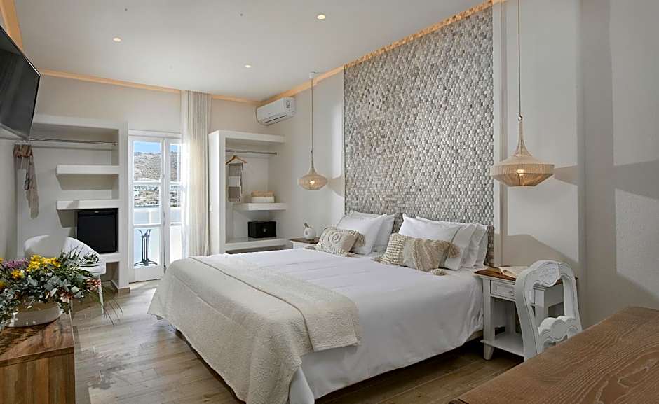 After a day of basking in the sun or exploring the vibrant streets of Ornós, unwind at the Erato Hotel Mykonos’s charming bar. Whether you fancy a refreshing cocktail after a long day or prefer a casual drink while mingling with fellow travelers, the bar is the perfect spot to relax and recount your adventures. Sip your drink while enjoying the lively atmosphere complemented by scenic views – a fantastic way to soak in the island's laid-back vibe.