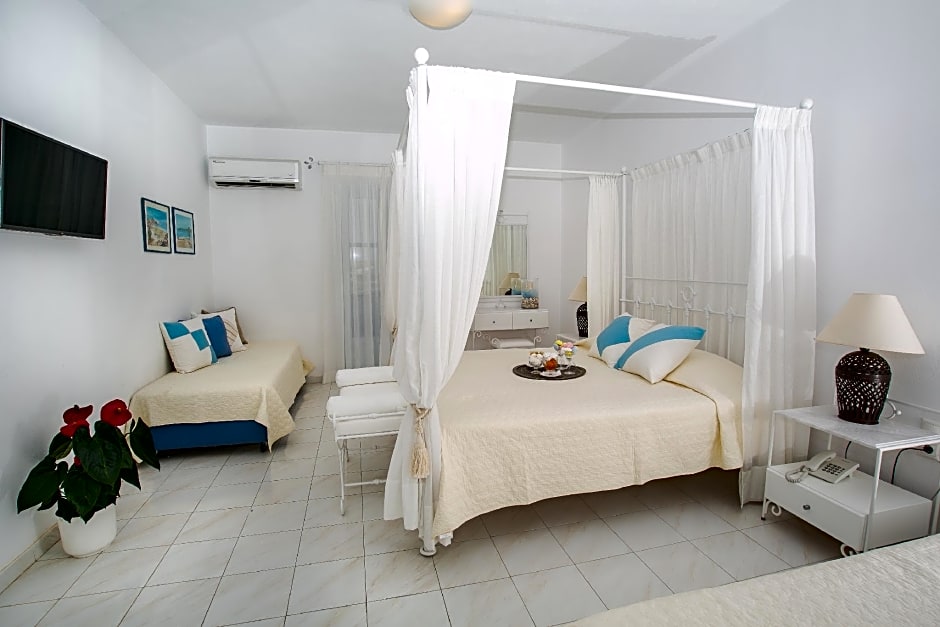 Following the characteristic Cycladic style, this suite includes 2 separate spacious bedrooms, a bathroom as well as private terrace. It offers: -air conditioning -LCD TV -safe box -free toiletries and a hairdryer