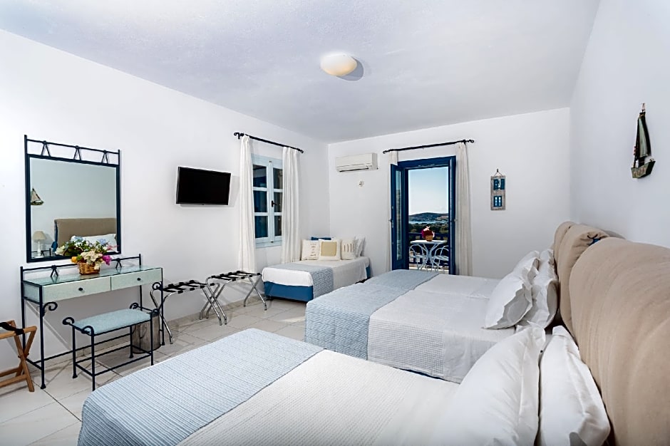 Decorated in blue and beige tones, this room offers views of the bay of Parikia. It offers: