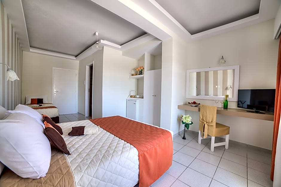 As the day winds down, unwind at the hotel’s outdoor seasonal pool, exclusively for adults, providing a tranquil space to relax under the Greek sun. Sip on your favorite drink from the bar, which is available for room service, and enjoy the peaceful atmosphere that makes this spot ideal for romantic getaways or simply enjoying well-deserved peace and quiet. With secure parking, convenient shuttle services, and friendly staff ready to assist you, your stay promises to be effortless and memorable.