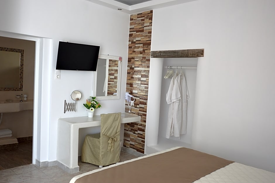 Ritsa and the Staff were very accomodating and friendly. I like that they clean the room everyday, facilities are clean. 3 mins walk to the bus stop, and a store, and 5 mins walk to Black beach with lots of choice of restaurants. Also Perissa beach is walking distance. I also like the swimming pool, they also have a bar and they have breakfast bar included. Also you can order food lunch and dinner and eat it on their food lounge.
