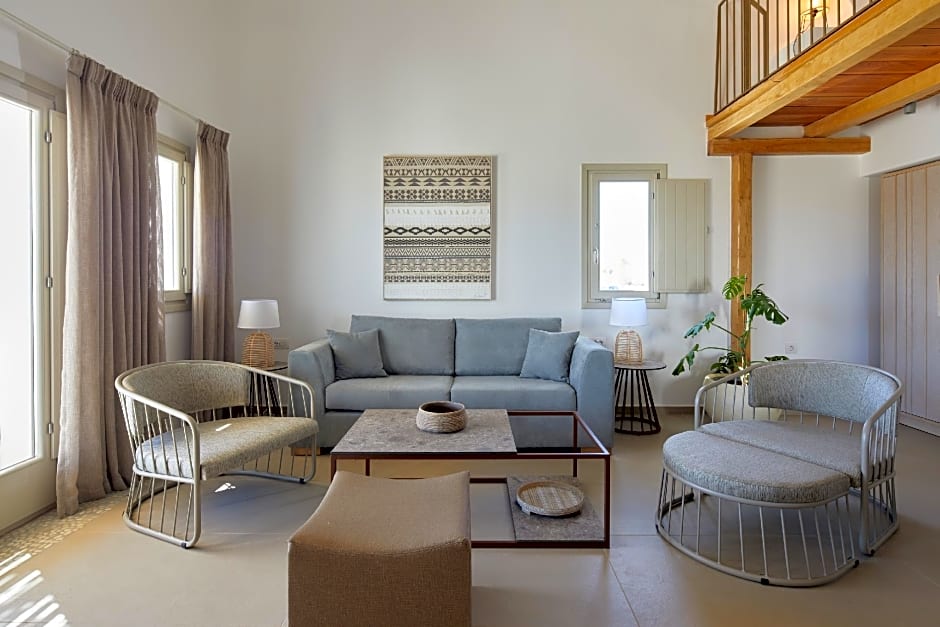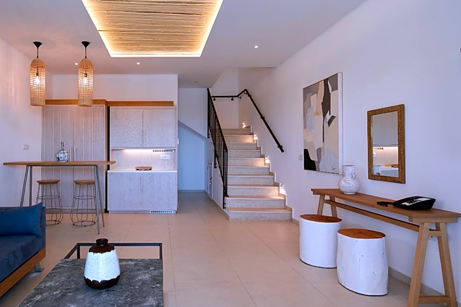 King Duplex Suite With Pool And Sea View is 538 square feet and includes a king-size bed 150-183 width.