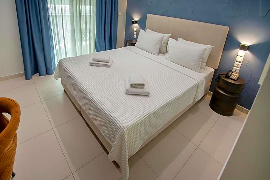 Located on the upper floors, either with a balcony or furnished terrace, this suite is fitted with top standard materials in contemporary colors. It consists of 2 rooms and features COCO-MAT beds and mattresses for top-sleeping quality, COCO-MAT wooden furniture, a convertible sofa, wooden floor, modern ergonomic bathroom with thermostatic rain shower, and shower cabin or bath. There is also smart internet-TV, mini-bar, tea/coffee maker and a laptop-size safe.