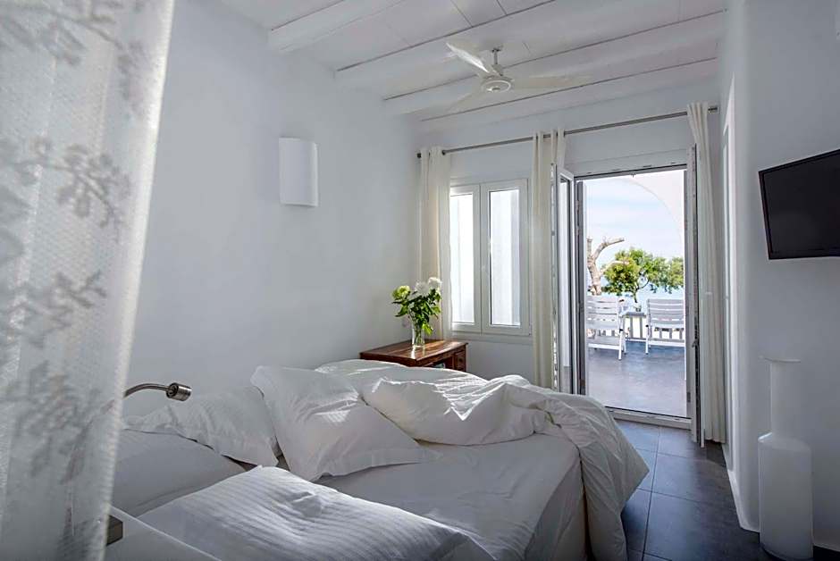 Our room was comfortable and stylish. We loved the location , a short walk into Pollonia but in a very quiet location with the sea a few steps away from the beautiful garden with very comfortable sun beds, deck chairs and table and chairs. We so enjoyed sitting in the garden sharing a bottle of wine and watching the sun set which was just magical. The owners were so welcoming and helpful and the lady in the breakfast area was excellent also. We were not so keen on Pollonia but would probable return just to stay in this hotel as it was so nice.