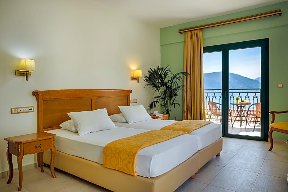 Nestled along the stunning coastline of Agía Efýmia in Poros, Kefalonia Bay Palace offers a luxurious escape in Greece with a perfect blend of comfort and adventure. Starting at just 150 euros per night, this charming 4-star hotel invites travelers to unwind with its free outdoor swimming pool, private beach, and a sun deck that promises breathtaking views. Whether you're lounging on the beach chairs, exploring the waters with optional snorkeling, or enjoying a family-friendly buffet, there's never a dull moment at this vibrant seaside retreat—plus, your furry friends are welcome to join the fun with pet-friendly rooms available for an extra charge.