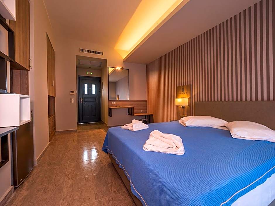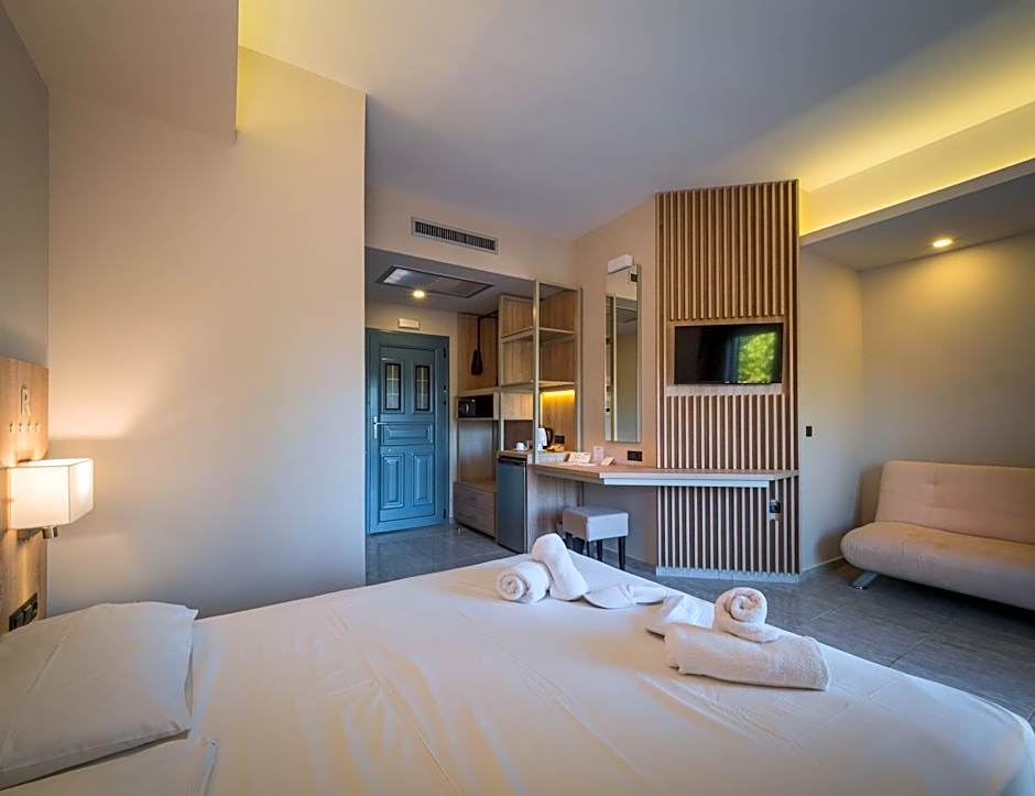 At the heart of the stay, the on-site Εστιατόριο delivers a family-friendly, modern dining experience with American, Greek, and Italian flavors. After a tasty bite, unwind with a drink from the bar and soak up the sun on the sun deck or linger on the terrace as the day winds down.