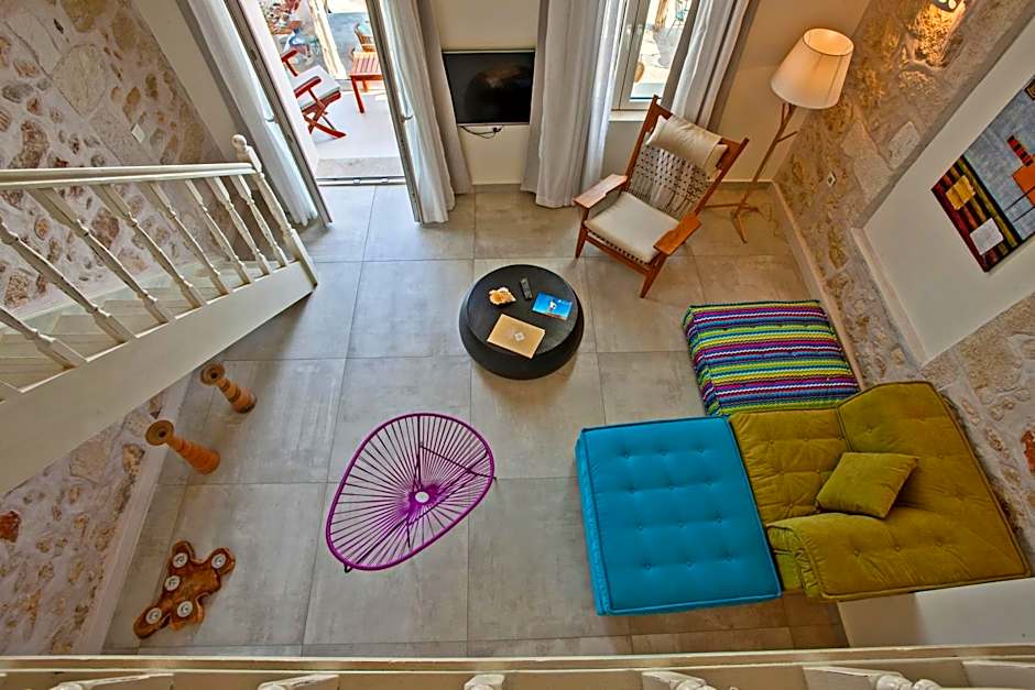 I love the actual luxury you feel walking into the place. There is a pool as you walk down some stairs you see modern yet ancient building. The front desk was Dahlia and she was overjoyed to greet us and made our 3 day weekend d great. Our room is dramatic with a wall of stone and a loft that I can actually walk around !!! Then next to the bed is a tub again modern and I get it the tub ! I am 6 foot and 250 lbs. the breakfast buffet is fresh and different and Aris does an amazing job. We drink a lot of coffee and he is always available. The hotel is on the sea and we swam every day ..... you can wade out for a while before it gets deep. The shower is amazing and again the service .... we asked for a glass of milk Sunday night for some bake goods we got but all the stores were closed and no drama so quick the front desk is amazing .... they ordered a massage in my room 60 euros and he is a physical therapist and was perfect ...../