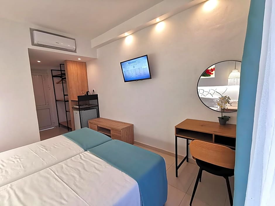 Super nice and comfortable studios. Everything in the room was great, and the bed was very comfortable. The A/C worked perfectly. The balcony/terrace super cozy. And the swimming pool is quiet so you can go there a relax and have a swim or tan. Great location if you rent a car!