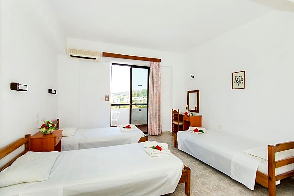 This is a very simple family run hotel. The rooms and pool are spotlessly clean but it’s basic. No television, no complimentary smellies and no beach towels. if you’re expecting this pay more and go elsewhere. while the above may seem negative. I loved my stay here. Maria and her husband were so friendly and kind. the room was basic but clean and the air conditioner worked. the pool was clean. the location. 1 minutes to a local shop run by a lovely friendly family, 2 minutes to bus stops for Rhodes town and Lindos, 5 minutes to the beach, 10 mins to restaurants, 15 minutes to the centre of faliraki and bar street. the area is quiet and peaceful.