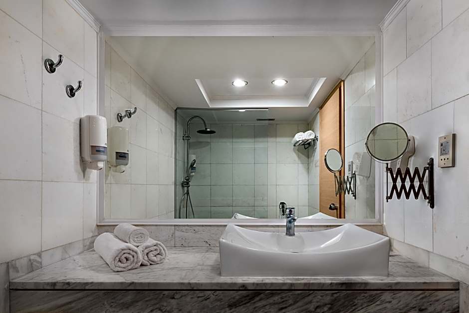 Kresten Palace Hotel offers a variety of room types including Garden View, Sea View, Deluxe, Standard, Economy, and Luxury rooms. Rooms can accommodate 2 adults and 1 child, with options for various bed sizes and views. Smoking is not allowed in any of the rooms.