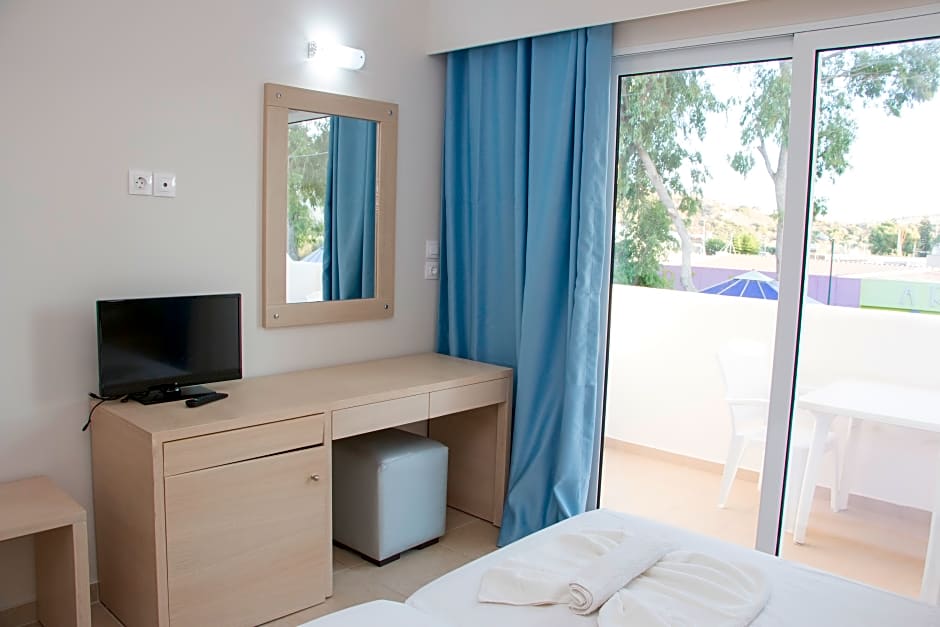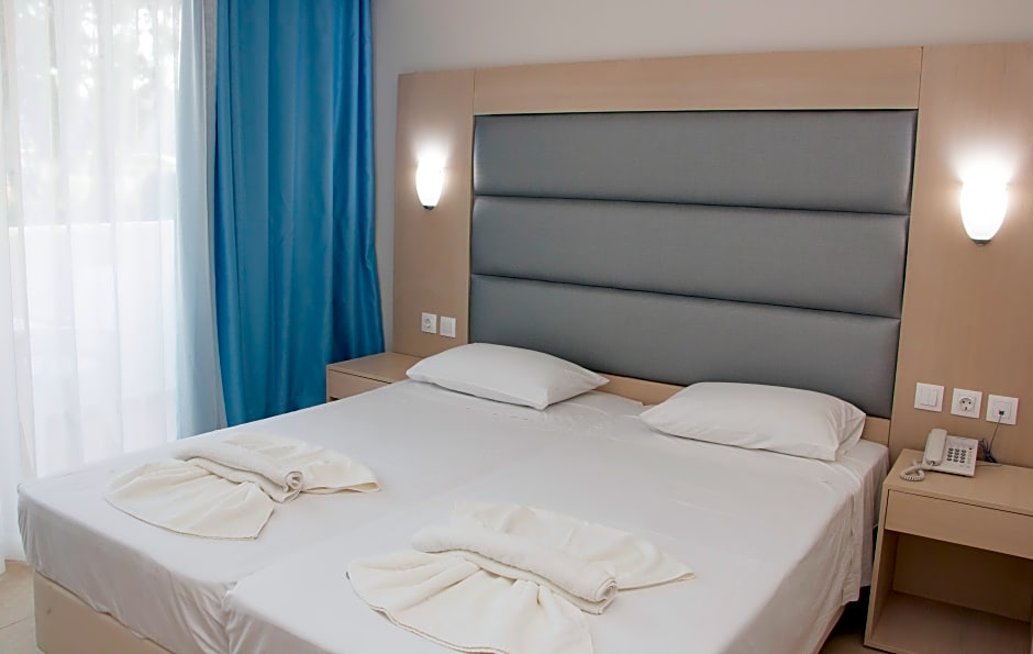 Extremely clean (they come and make your room every single morning, maximum up to 12:00, fresh sheets and towels). The staff is incredibly friendly and helpful. All meals (including the pizza bar) have a nice variety and always pretty tasty: drinks at the bar available all day, pizza for most of the day such as ice cream…at night, up to 24:00, you have a gyros stand, amazing! 10 min away by feet from the nearest beach but you can easily enjoy and discover the other ones by renting a small scooter (about 20/30€ a day). Lots of souvenirs shops, restaurants (in case you did not select “all inclusive”), car rentals and even a supermarket right next to the hotel