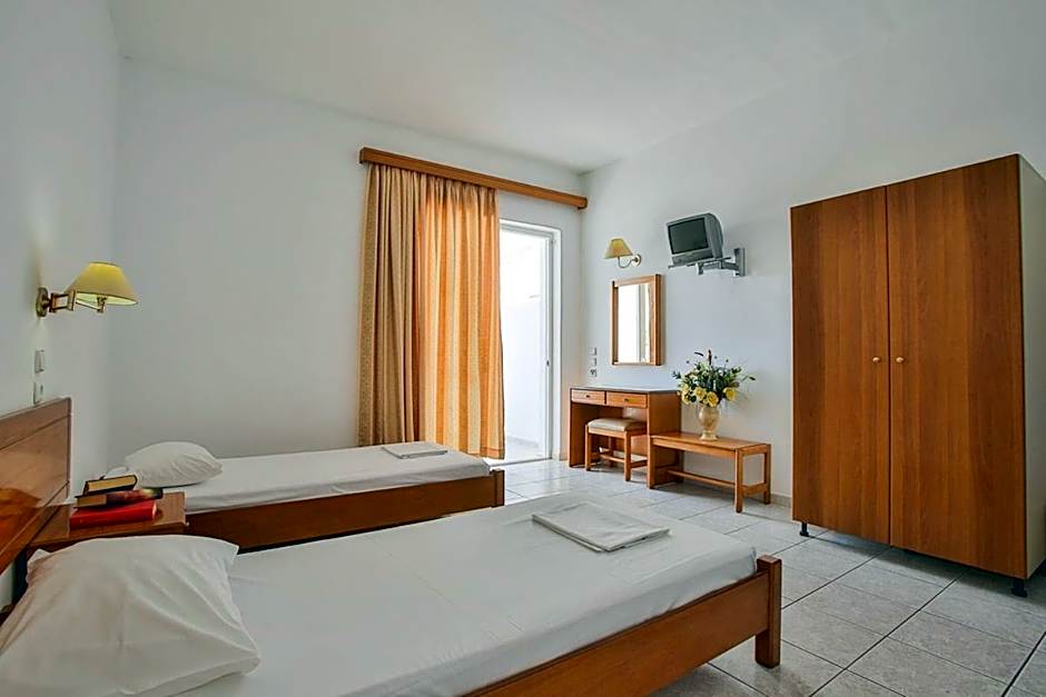 Pool bar/restaurant staff was very friendly and positive. Food altogether was of really good quality (large portions!) and breakfast had nice wide choice to select from for a 3 star hotel. Breakfast/dinner restaurant and reception building was very clean, pleasant place to be in (sharp contrast to the the rooms we had). Rooms had powerful AC's. Beds are comfortable. Pool area is small but functional and sufficient. Location is awesome - close to beach (incl to Sea Shuttle stop to Rhodes city), around the corner goes the main street with restaurants, moto rentals, etc.