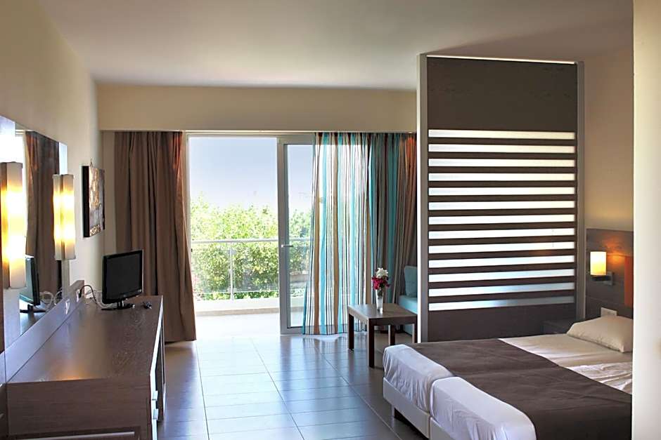 The hotel is located a few meters away from the beach and there are a lot of restaurants nearby. If you want, you can have lunch or dinner inside the hotel as well. They also have a supermarket inside the hotel if you want to buy water or snacks. The breakfast had a lot of options (different types of meat, cheese, vegetables, sweets, coffee, juice, tea). We had an apartment and it was very spacious, the staff was very nice and helpful. They cleaned the room every day. Also, another thing we liked was the fact that we had pool/ beach towels in the room, which is not that common for hotels to offer by default. Another positive thing was the public parking across the street, we didn't have any problems with finding a parking spot for the car we rented during our stay in Rhodes.