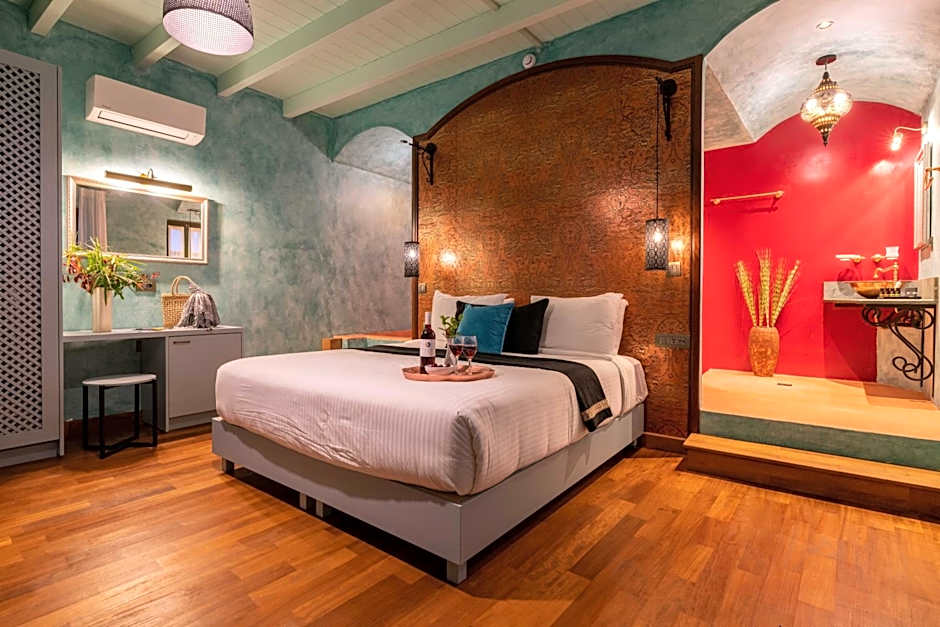 At the Sperveri Boutique Hotel, guests can choose from different types of rooms including the Honeymoon Suite with a hot tub, Premium Double Room, Superior Suite, and Superior Double Room. Smoking is not allowed in any of the rooms. Bed sizes range from King size to a combination of a Sofa Bed and a King size bed. Room sizes vary from 215 sqft to 581 sqft.
