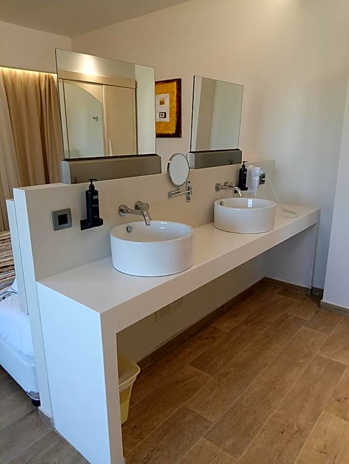 On-site dining centers around a restaurant and a bar, with the snack bar delicia offering Greek and European fare in a family-friendly, modern atmosphere. A kid-friendly buffet and room service add convenience, while thoughtful touches like free Wi-Fi, free parking and free beach umbrellas and chairs make beach-bound days even easier.