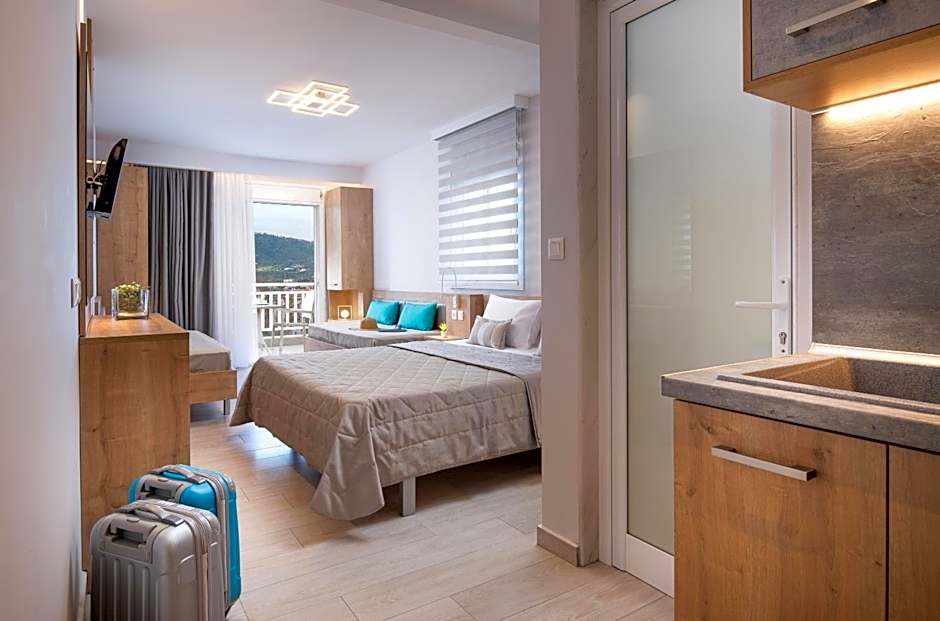 The Hotel is very well located in the southern part of Sarti. It is calm, just some steps to the beach, beach bars and good restaurants. The welcome of the hotel staff was very friendly and supportive. The rooms are new and well equipped. The balkony is suitable. The small bathroom has a shower cabin. Even a small kitchenette supports the stay.