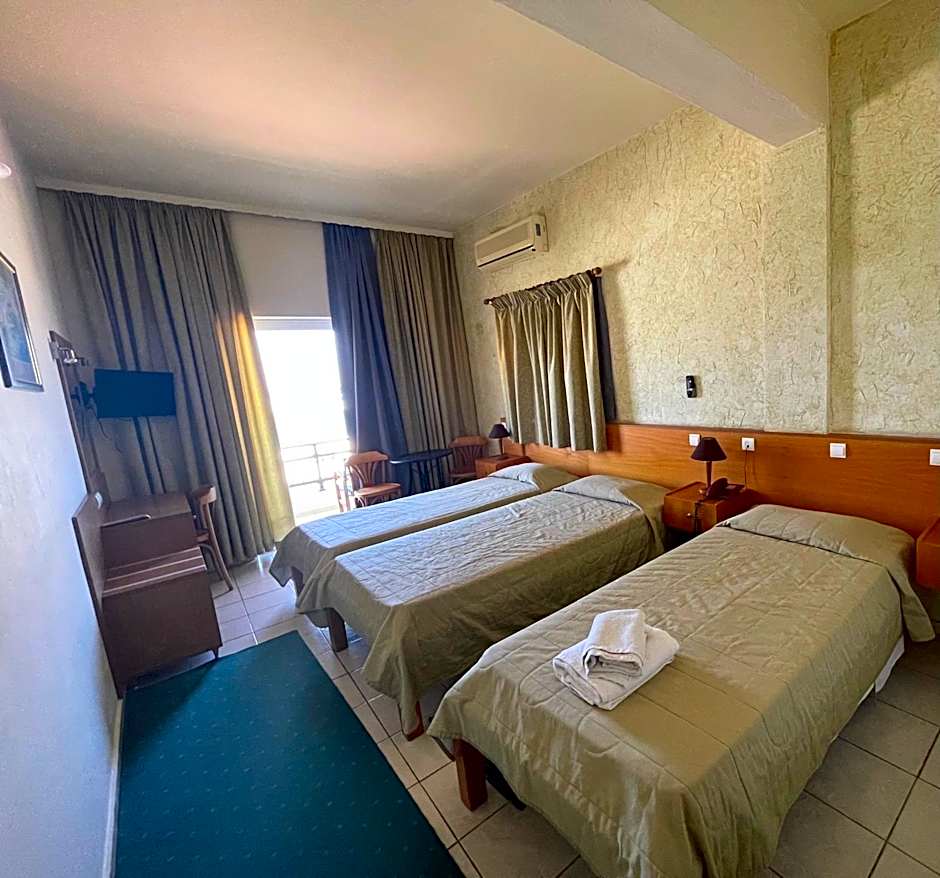 The spacious triple room offers air conditioning, soundproof walls, a terrace with sea views as well as a private bathroom boasting a walk-in shower. The unit has 3 beds.