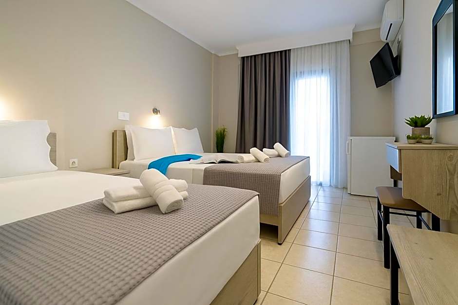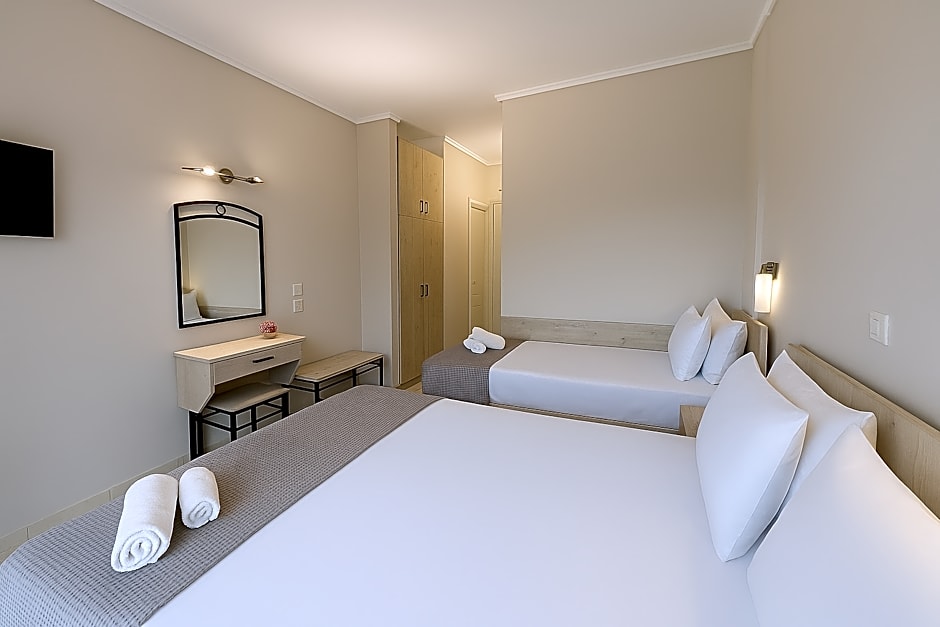 So we don’t know from where we can start. Firstly we was impressed by the cleanliness and the coziness of the hotel. Every day the cleaning staff was cleaning our room which was game changer because we are with small kid. The breakfast was amazing - tasty and every day you have different choices. The unlimited drinks (tea, coffee) during the breakfast were such a good compliment. The room was nice, clean again and cozy. The bathroom was brand new and comfortable. Last but not least - the hotel‘s owners are amazing people. Dimitris, his brother, wife and mother are really good people. Not only their hospitality but also their humanity and respect to everyone guests. We are impressed much more because of them and they are the reason why we will come back again to this amazing place.
