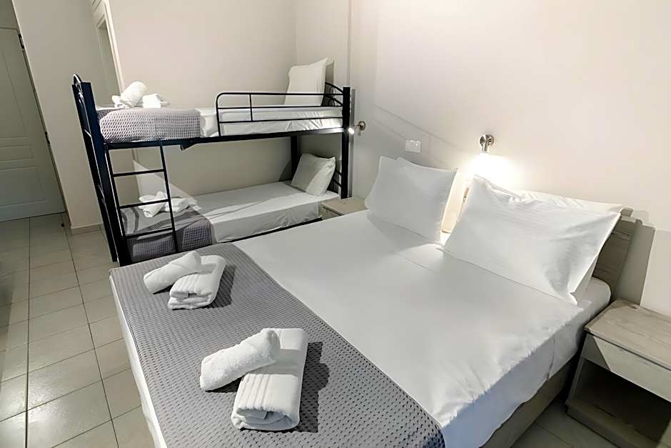 Hotel located 100 meters from the sea. It is family business run by Dimitri, Herculis and their mum. Lovely people. Always available to satisfy our requests and recommend places to go. Superb breakfast. Typical food with wise range of choices. I highly recommend this hotel.