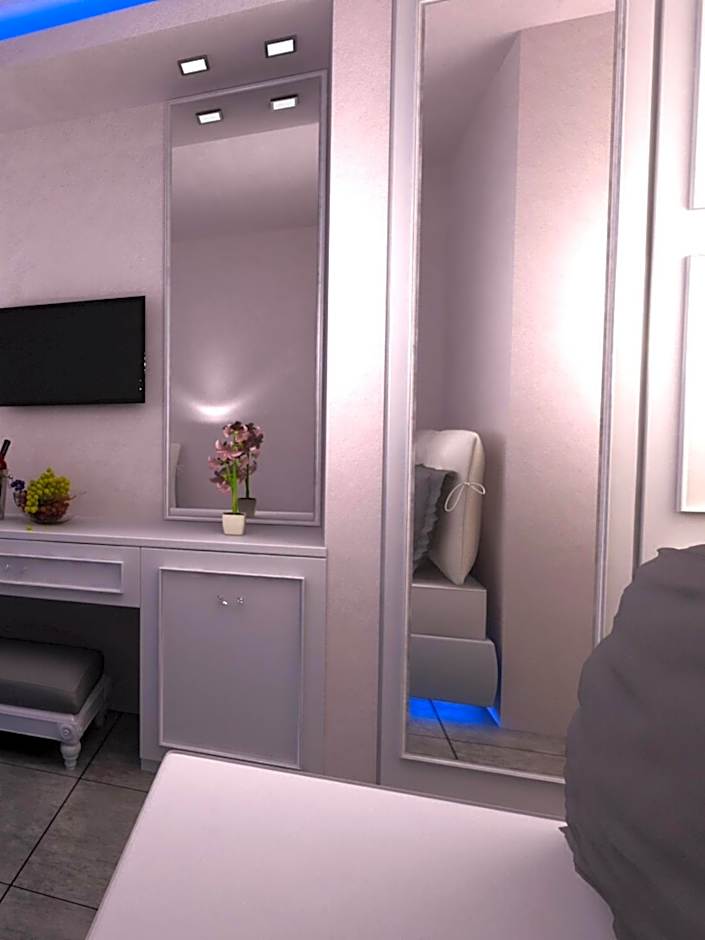 This modern room opens to a balcony with views of the Aegean Sea, and features a spa bath.