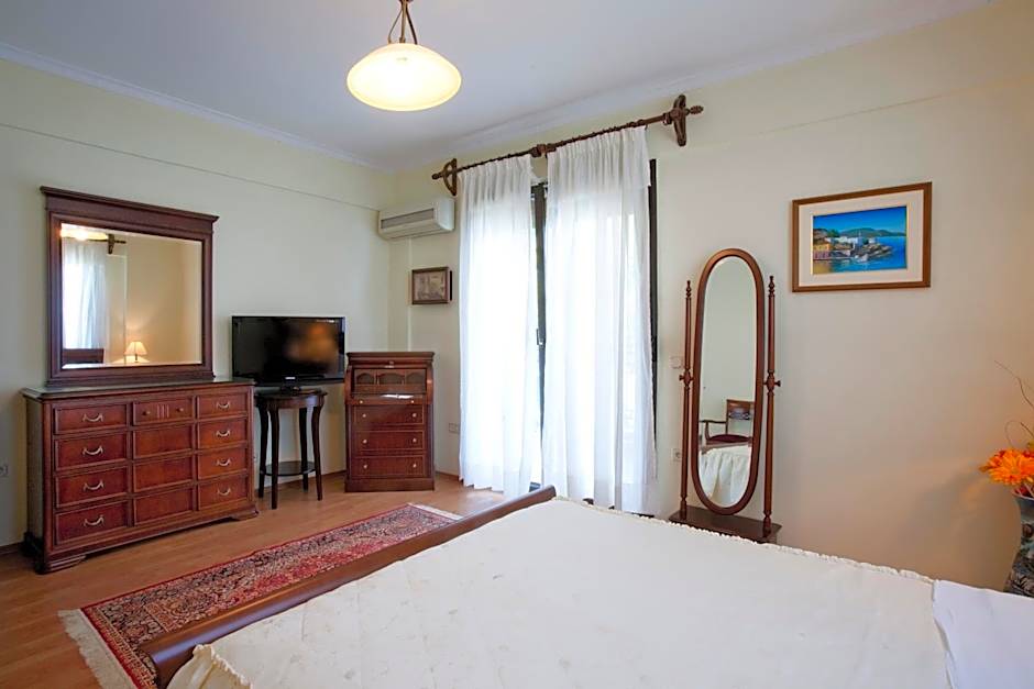 Spacious room with a satellite TV, air conditioning and views of the Aegean Sea from its balcony.