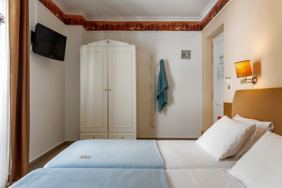 Great room, not the best view at the back but pleasant. Small balcony but can sit on and not in the sun which is great as far too hot in August. Good air con, fridge and kettle, 2 glasses, 2 cups and a knife fork and spoon which was useful. Great good sized comfortable bed and quiet. Excellent position in the town and value for money. Supermarket next door and cafes, Bars, restaurants and bus stop on your door step
