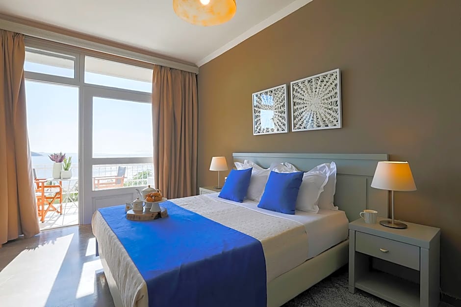 A small and friendly 16 room property, very nicely appointed with some lovely features. Very friendly and helpful staff. Nice pool area, sunbeds and towels provided. Incredibly helpful and friendly staff. Small bar with long opening hours. Only Breakfast and a small snack menu until 3:30pm. Superior room (8), top floor with sea view good and plenty of space. Excellent sized fridge which actually kept drinks cold. Safe in room. Kettle provided if you ask. Hairdryer in bathroom. Good AC. Hotel has the advantage of being opposite Bus Stop 6 - which is the main, and one and only bus route Skiathos to Koukounaries. Gets very busy. Hotel Driver/bus can be booked for various transfers (and similar price to a taxi) per room price is: 10€ Skiathos 12€ Port & 15€ Airport. Or catch the very crowded bus for 2€ each Airport - There is a local airport bus or shared taxi - €10 to the port Access directly opposite is onto Megali beach -but it is the stoney/grit end. Better to walk further up to the sandy area and hire sunbeds outside the Thessaloniki restaurant which was great value; giving access to drinks, wifi, toilets and a reasonable restaurant…