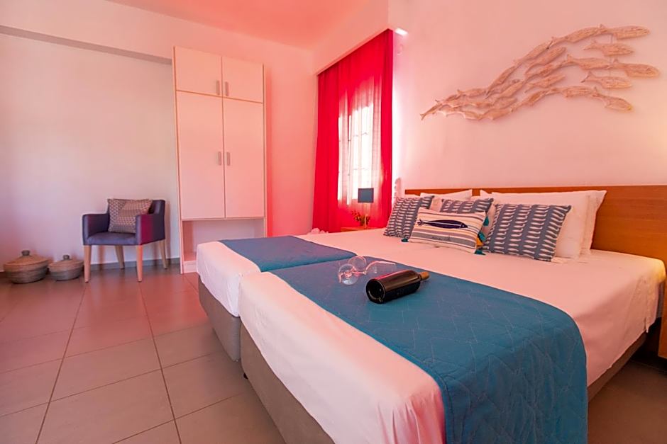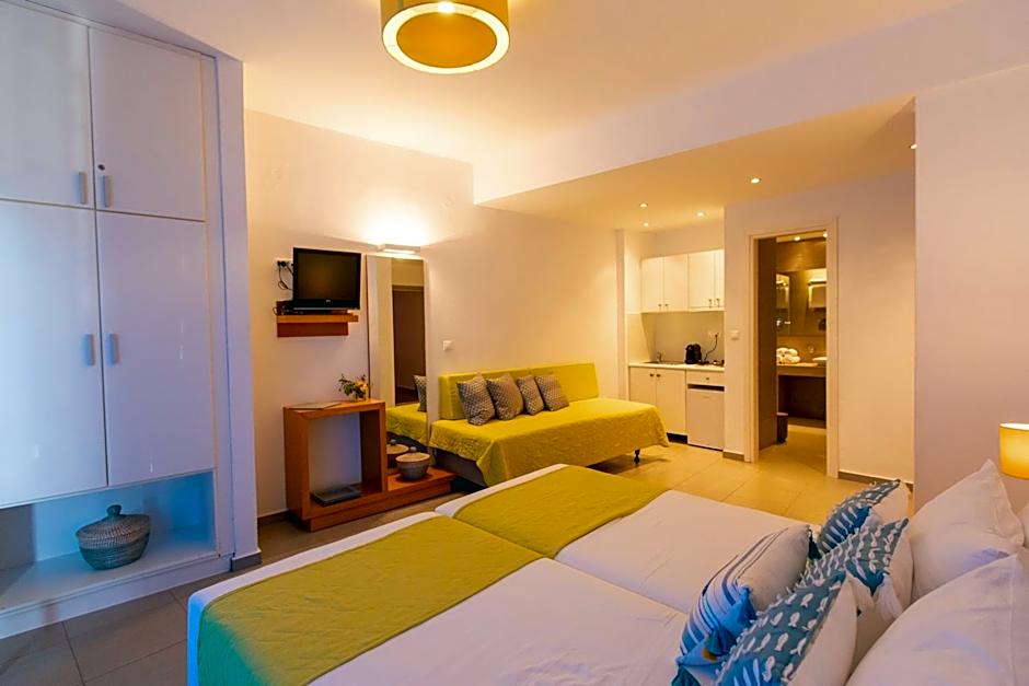 Location is great , it's walking distance to the port and center itself. Around you can find supermarkets , bakeries and coffee shops. Every day without exception the room was cleaned which we value the most always! Room was really big, actually there was 2 rooms - living room with kitchen and bedroom. The girl on the reception was absolutely great , polite and smiling! The same i can say for the lady that was taking care of the garden. One "καλημερα" in the morning can make a big difference
