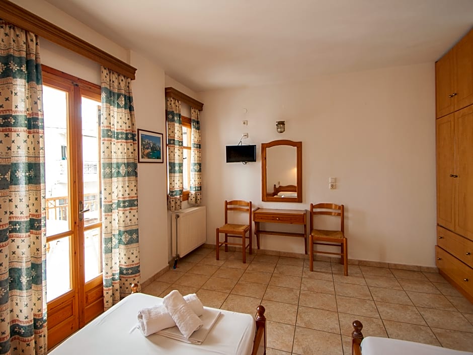 Unwind in comfort in the Standard rooms at , specially designed to accommodate 2 adults and 1 child. Whether you choose a room with a view of the beautiful surroundings or a private balcony overlooking the lush garden, you'll find solace and relaxation in their tranquil atmosphere. The extra-long beds beckon you to sink into a restful slumber after a day of exploration, promising a rejuvenating stay infused with local charm that captures the essence of this enchanting Greek island.