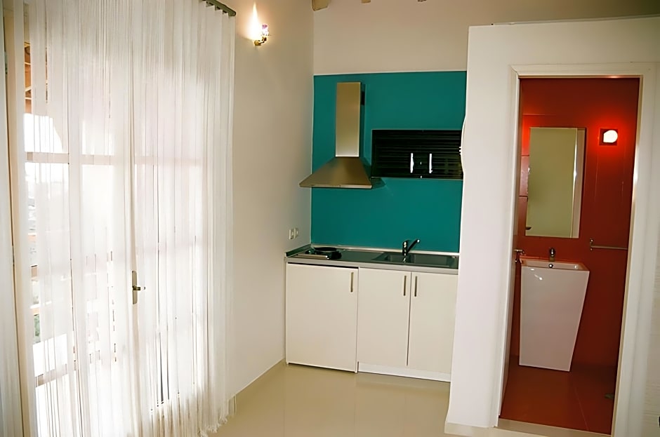 Modernly decorated studio with a private balcony overlooking the Aegean Sea. It includes: -air conditioning -kitchenette -toiletries -satellite LCD TV -private BBQ -DVD/CD player.