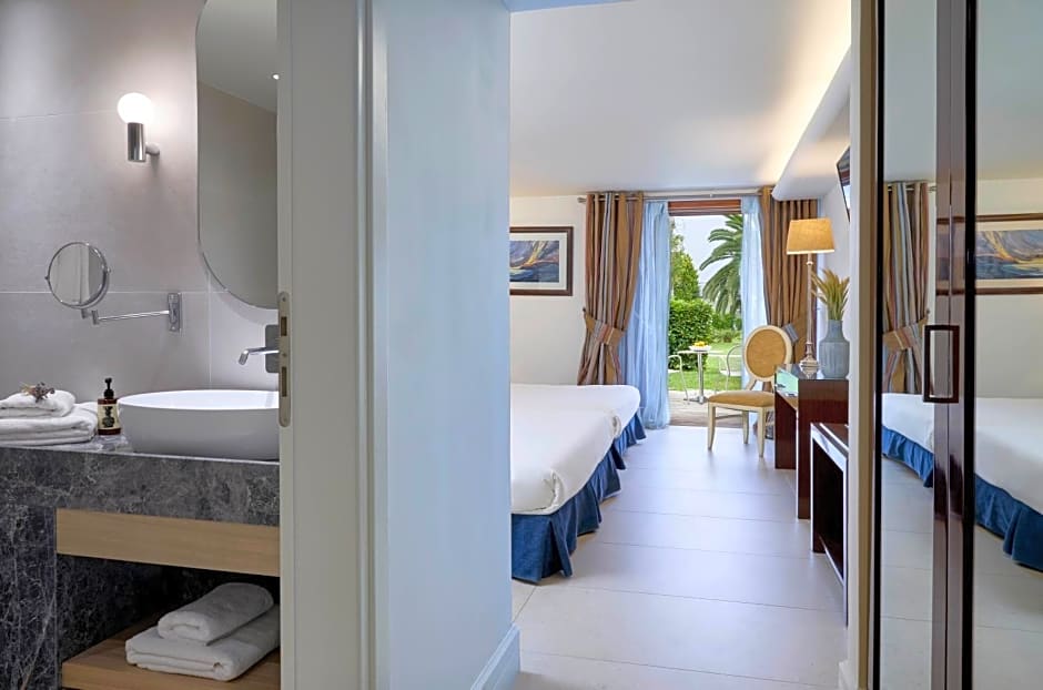 Premier Deluxe with Private Garden or Balcony is 431 square feet and includes 2 double beds 131-150 width.