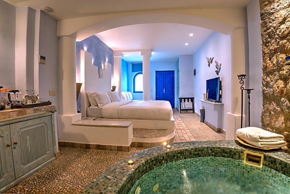Astarte Suite private infinity pool,indoor Jacuzzi is 969 square feet and includes a king-size bed 150-183 width plus living room, balcony, terrace, satellite tv , cable tv, hairdryer, tea and coffee making facilities , ironing set, safe, bathrobes, and slippers.
