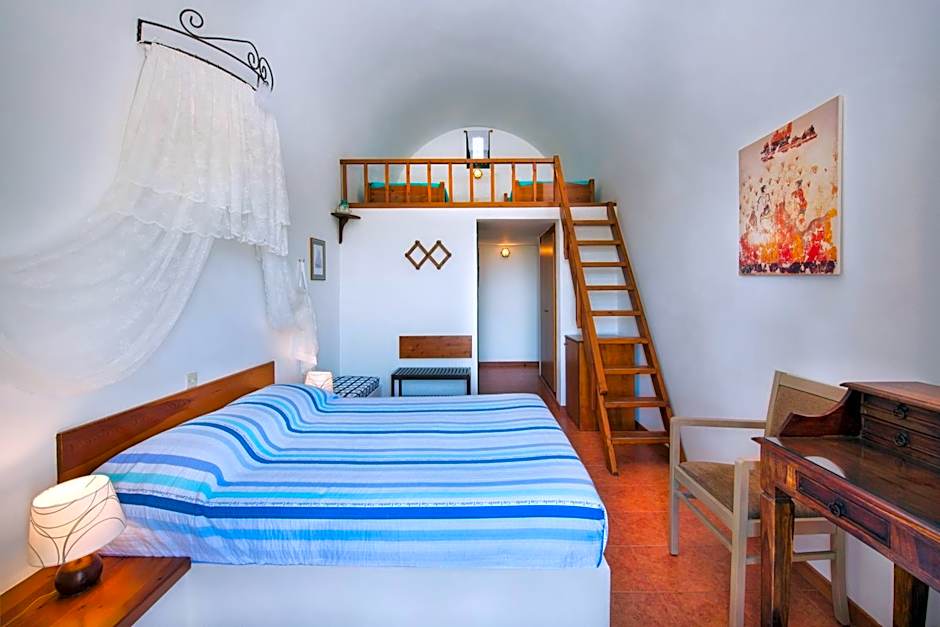 Cycladic-style and split-level unit offering a terrace or balcony with unlimited views of the Caldera or Aegean Sea. Includes a fridge, satellite TV and bathroom with hairdryer.