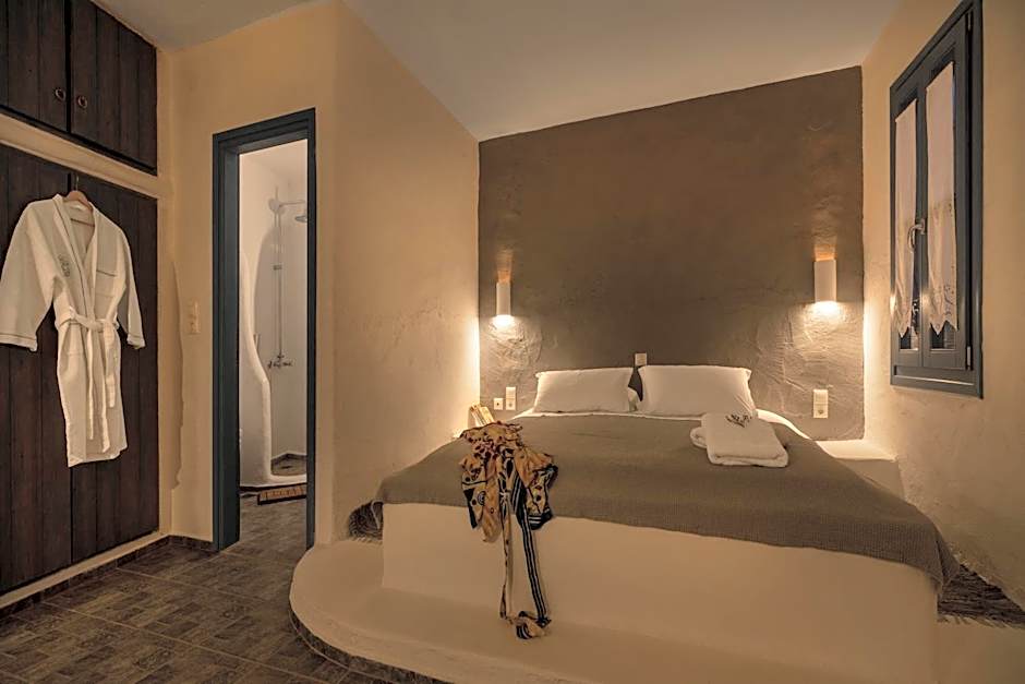 Castellano Village invites a relaxed island rhythm: mornings on a sun deck, afternoons by a seasonal outdoor pool with an infinity edge designed for adults, and evenings on a balcony with garden or landmark views to unwind after a day of exploring Analipsi.