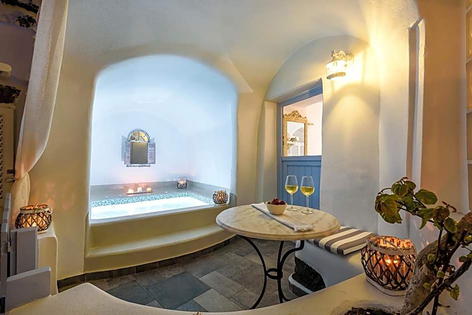 This is a boutique hotel family run operation. It’s 8 cave suites run by a very kind couple. First off - accept there offer to arrange a pick up from the airport. It’s a 45-ish minute drive. They will also arrange the porters once you arrive to the city. The city of Oia was not built for roller bags/suitcases and they need to be carried (it felt very VIP to have the airport pick up and porters). By the way - Oia is the right choice over Fira or any other location on Santorini. And Aris Caves is situated right in the middle of Oia - you cannot beat the location. We stayed in their largest suite and our friends stayed in one of the mid-size suites. The arrival to Aris Caves and charming steps with expansive ocean views will wow you upon arrival. When we walked into our suite my teenage kids started giggling with excitement and let me tell you - my teens are not easily impressed by anything that isn’t on a screen. Our suite had a kitchenette and dining area, a loft with two twin beds, a queen bed in the open bedroom under the loft, and a full bathroom, and a separate master bedroom with king size bed and our own bathroom. The master has an attached balcony with sun chairs and a hot tub and the most expansive views of the ocean/caldera. We spent 5 days in this suite and I think that was the perfect amount of time. Anything less and we would have missed out on getting to see everything we wanted to see in Santorini. The cherry on top was the momma cat and baby kitten that lived on the balcony below ours.