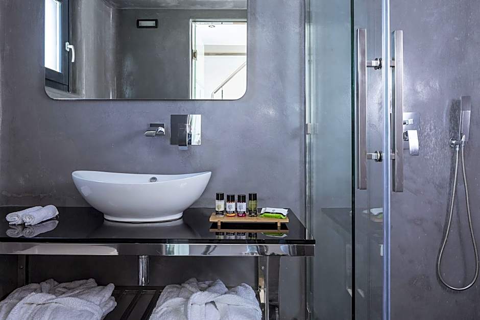Fitted with a hot tub, this more spacious and air-conditioned suite opens to a furnished balcony with Aegean Sea views. It features a mini-bar and a flat-screen, satellite TV. A private bathroom with bathrobes and a shower with hydromassage facilities is included.
