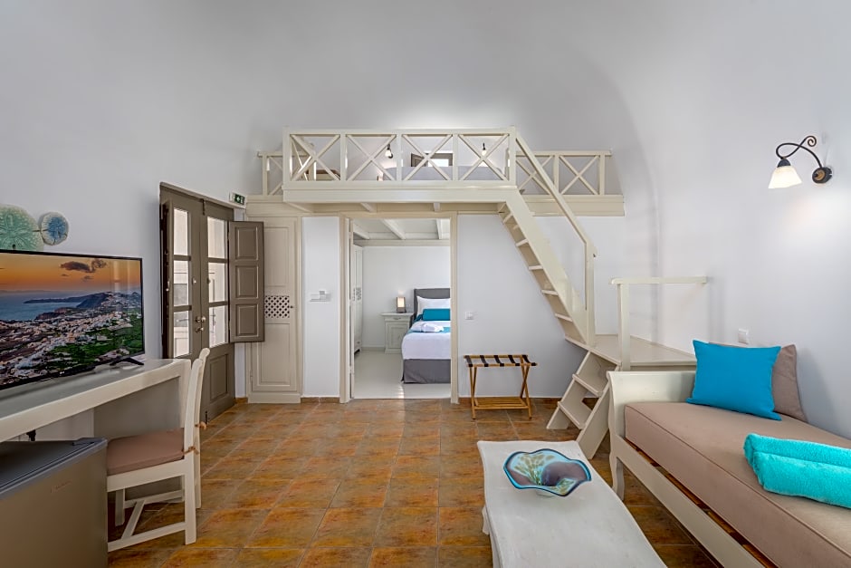 This Suite is located on the upper floor of the hotel and has two large verandas overlooking view to the azure Aegean sea. 1st floor, you will find a spacious bedroom, comfortable Serta orthopedic mattress, a living room with sofa-bed that turns into a single bed, 32" Smart TV, illy coffee machine, a hairdryer, private bathroom. 2nd floor, there is open loft with a vaulted ceiling, double bed with comfortable Serta orthopedic mattress and a wooden floor. The suite can accommodate up to 5 guests.