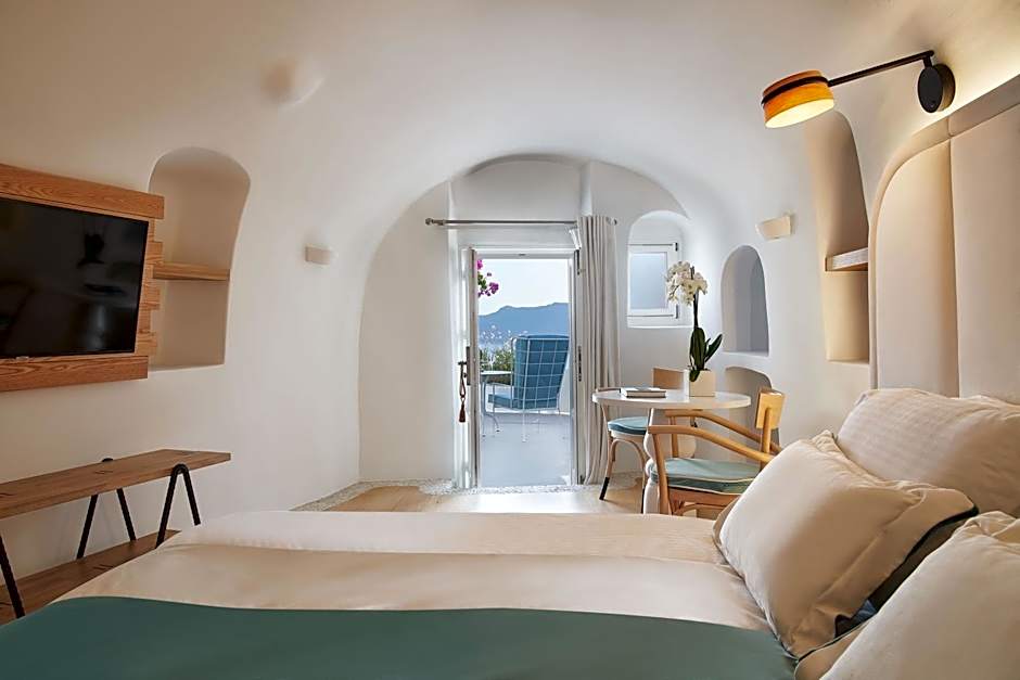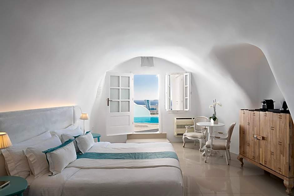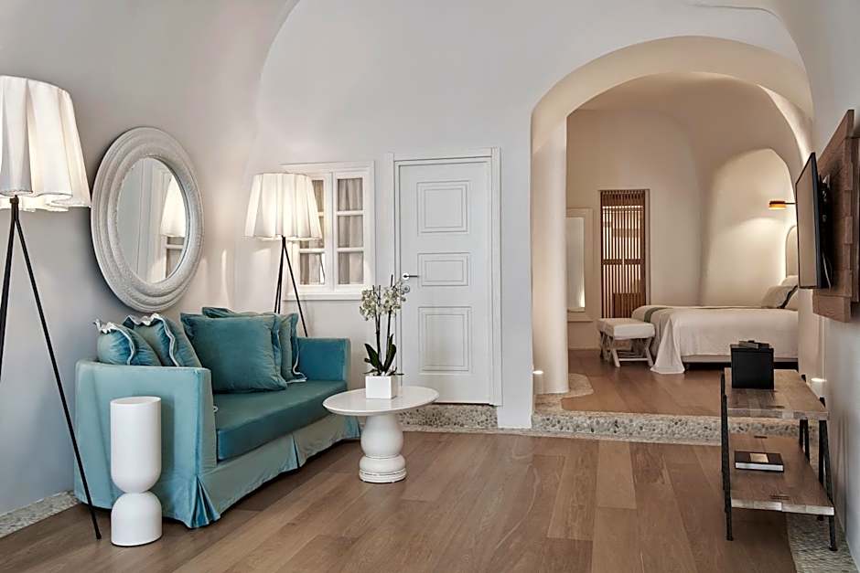 Features chic, contemporary design, spa bath and views of the caldera. It includes a stylish seating room and dining area, luxurious bathroom with bathtub or shower.