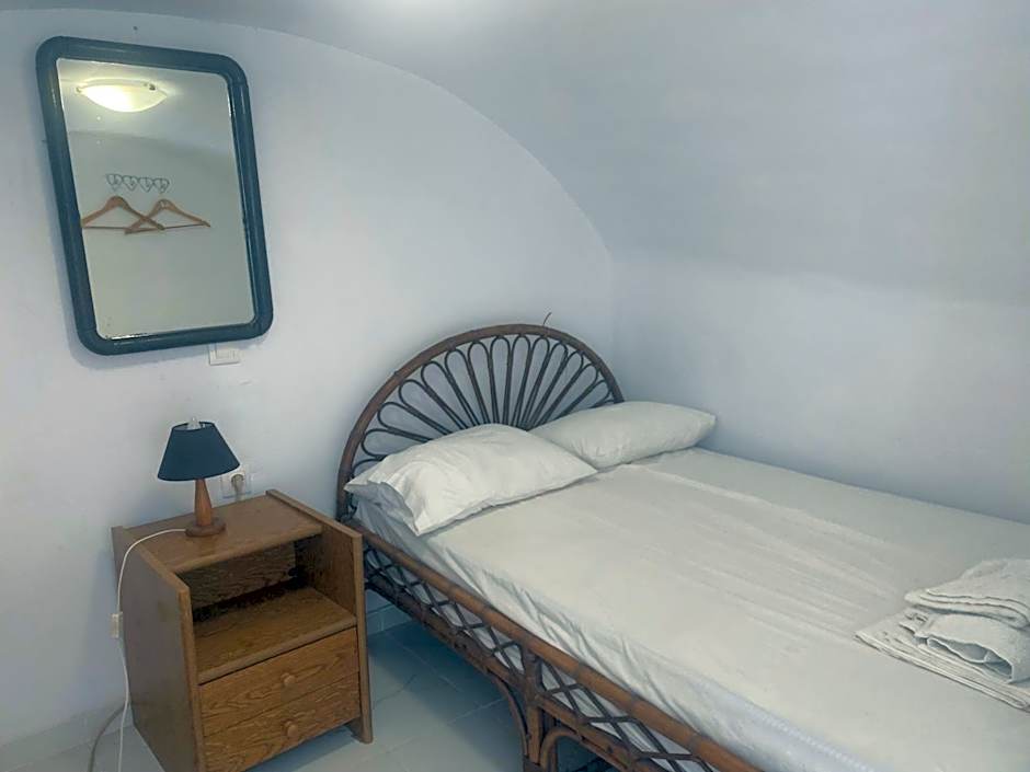 Traditionally decorated, this room is 3 steps below ground level and used to be an old cellar. It features a fridge, a fan and a private bathroom.