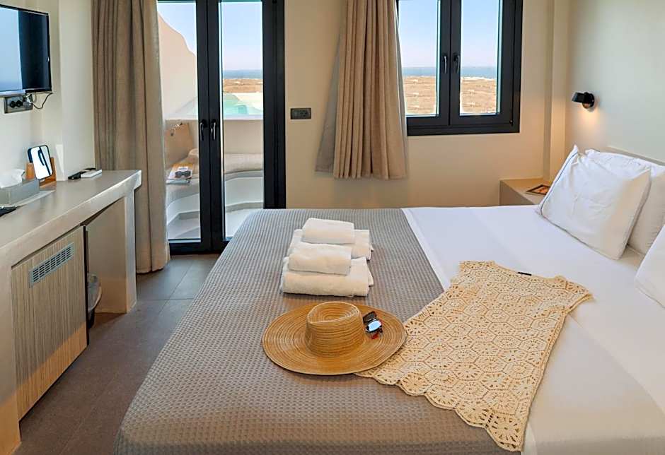 We recieved the room that we wished for. Owner is very nice, she reserved table at the restaurant for us. Every day you have to make an order through watsap communicator for breakfast you want. You can either eat in your room or near the pool. We preffered the second option. Judging only from the map you can be fooled that view for the sea is the caldera side but it's the other side actually, still very picturesque. Hotel is situated at the beginning of Oia and there's a 10 minute walk to the centre. There's a cheap shop near the hotel if you need anything.