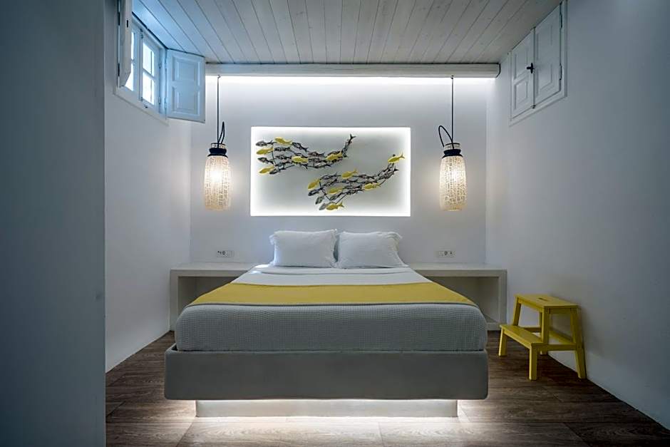 This air-conditioned split 3-level villa with one of the bedroom located on loft level accessible with wooden staircase features a private, outdoor hot tub for 6 and provides access to 2 shared pools. Offers sun terrace overlooking the Aegean Sea and the sunset. All remaining bedrooms are located on the lower level. There are also a shared outdoor fireplace and a private outdoor dining area covered by a pergola, as well as a private garden. It has a fully equipped kitchen, living room with a flat-screen TV, and eco-friendly mattresses. Free WiFi is available. Upon arrival, guests are offered a welcome basket including a bottle of wine, orange juice, water and traditional Greek products. Extra beds and baby cots are provided on request.
