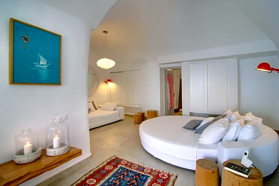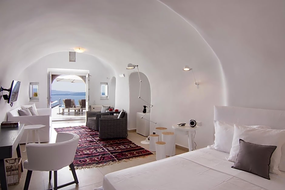 Featuring Caldera View, a private terrace with outdoor infinity pool, sun beds and dining area. It has a spacious bedroom, separate living area with spectacular sea views, internal staircase, and bathroom with glass cabin shower with hydromassage jets. Guests in this soundproofing and air-conditioned suite are benefited with a private entrance.
