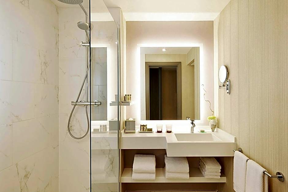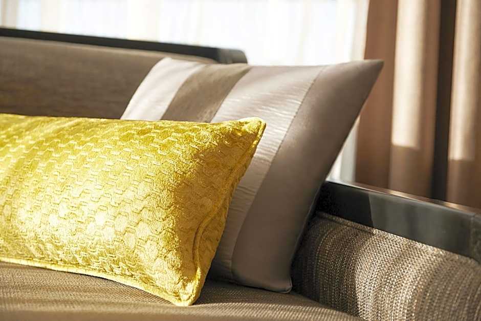 Spacious suite with a living room and views to the pool area. Features carefully selected decorative details.
