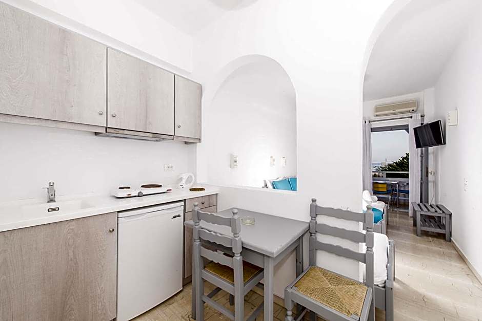 Just 98 feet from Kamari Beach, this air-conditioned apartment opens to a balcony overlooking the mountain. It features a kitchenette with dining area, fridge and cooking hobs.The private bathroom is stocked with a hairdryer.