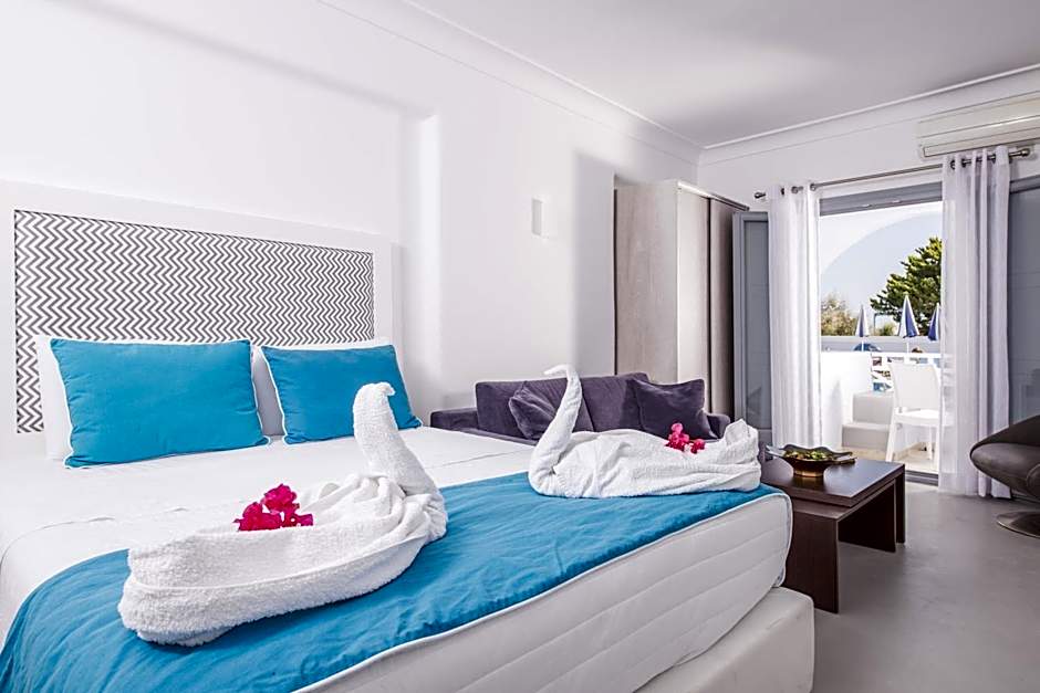 Blue Waves Suites & Apartments is a 2-star hotel in Kamari, Greece, located about 0.4公里 from the city center. The address is Kamari, offering a straightforward base for a sun-soaked seaside stay.
